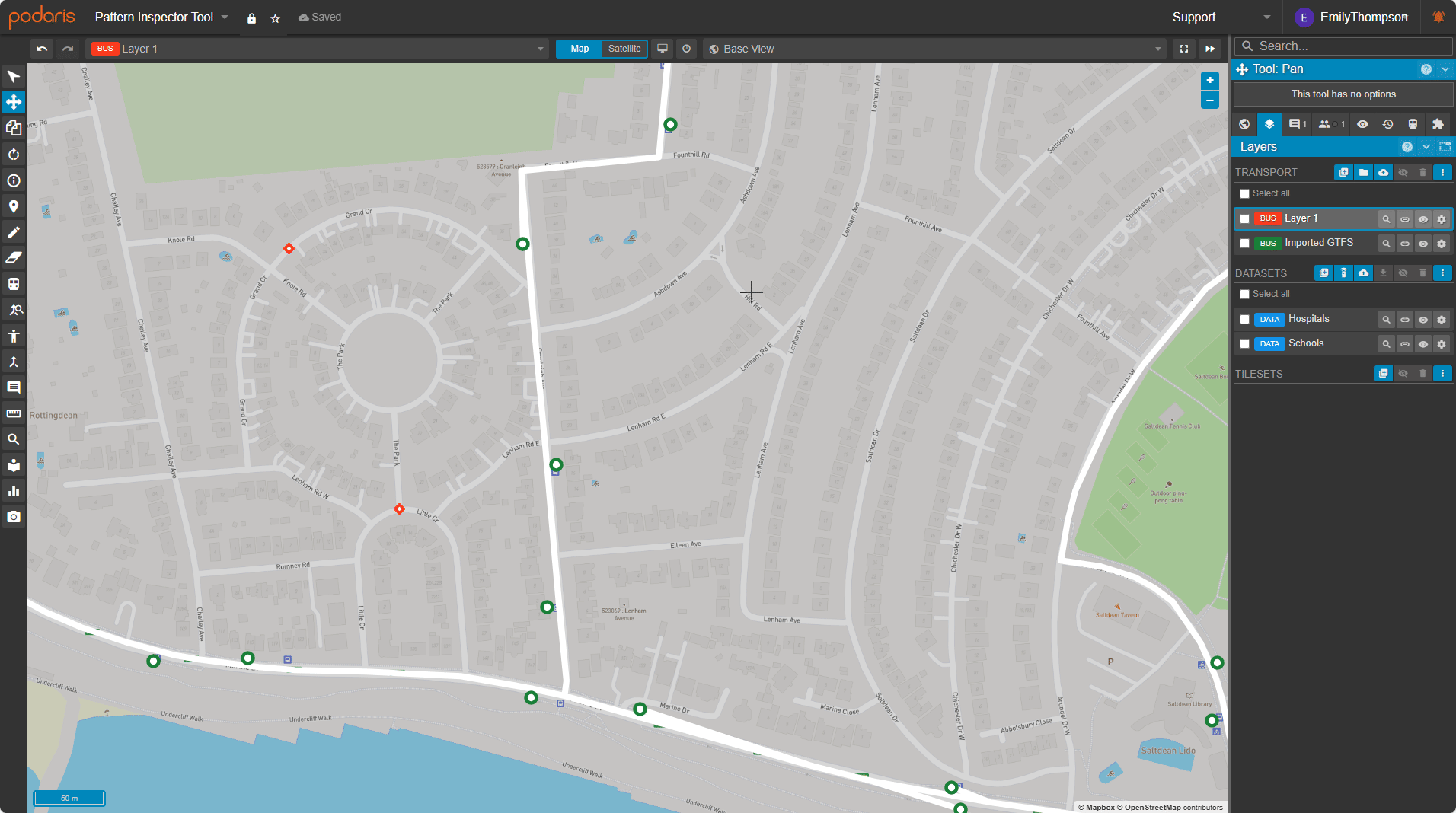 The Pattern Inspector helps you quickly find and update route patterns that serve two stops or pass through a location.